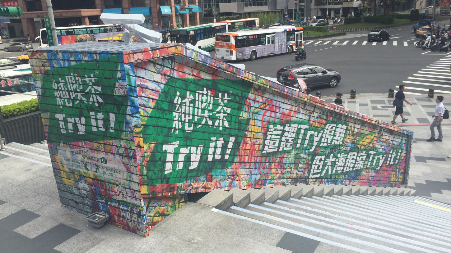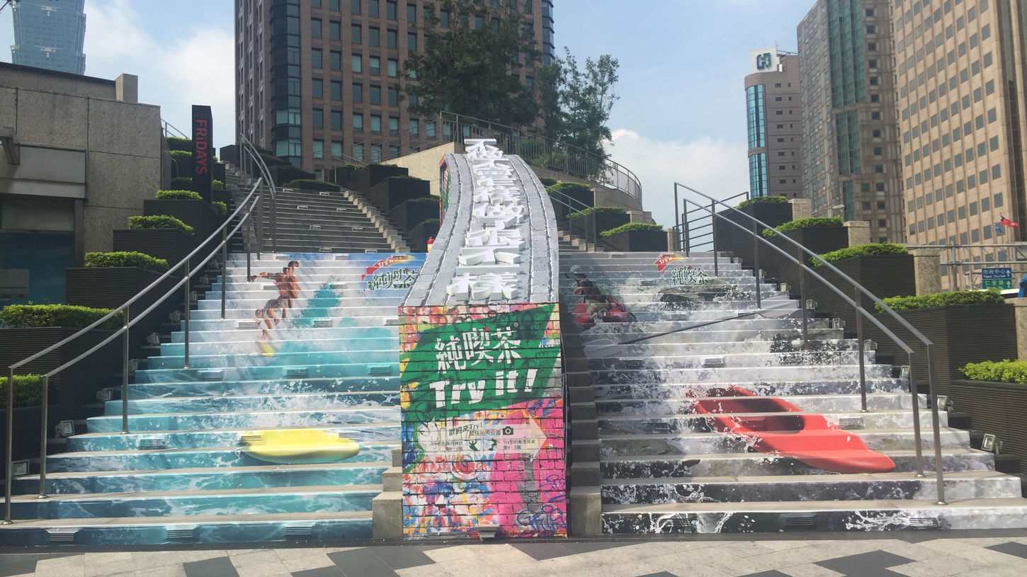 樓梯廣告除了精準對位的理性執行考量外,張貼時期為颱風季,正好遇上強烈颱風尼伯特(Nepartak),在強風吹襲下 結構依然完好無損。