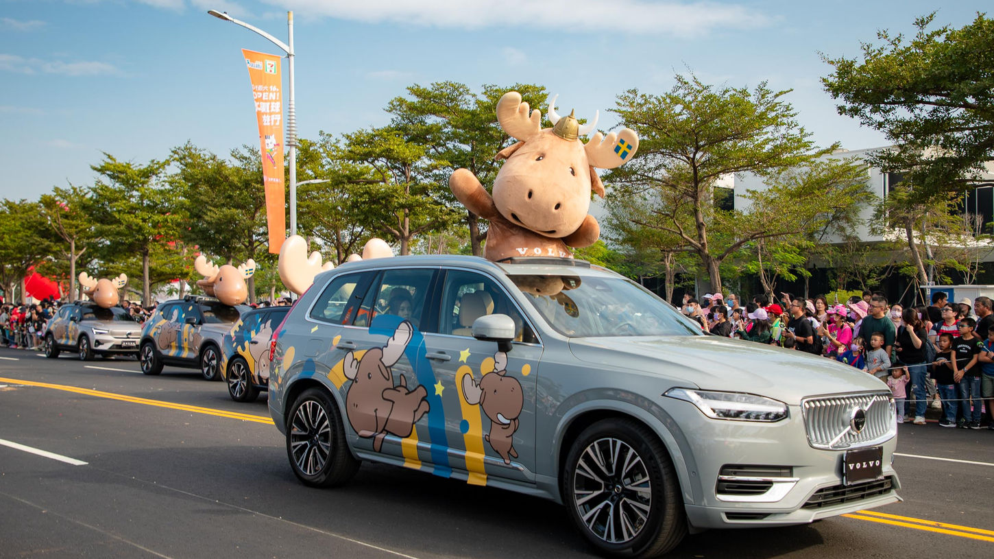 VOLVO做為遊行第一大隊領頭前行,以FRP打造9輛MILU家族造型秀,車隊中有鹿角偷偷探出,車頂上還有 MILU 趴在上面!加上可愛的 MILU 也探出頭來跟大家揮揮手打招呼!整個空氣都瞬間俏皮起來了!